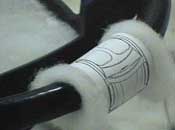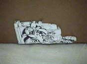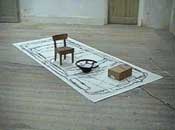 vehicle das kinderspiel des autofahrens. gleichzeitig eine auseinandersetzung mit abbildungsverfahren. ein abdruck in originalgröße eines `minis´ auf stoff - so wird dieses vehicle der neuzeit zu einem fliegenden teppich, das wunder der technik gemahnt an das wunder des leichentuches von turin. die fantasie siegt über die vermeintlichen einschränkungen vermeintlicher realität. this project took place in 1999 |